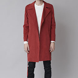 大胆なレッドが目を引く春らしい陽気なカラーコート。